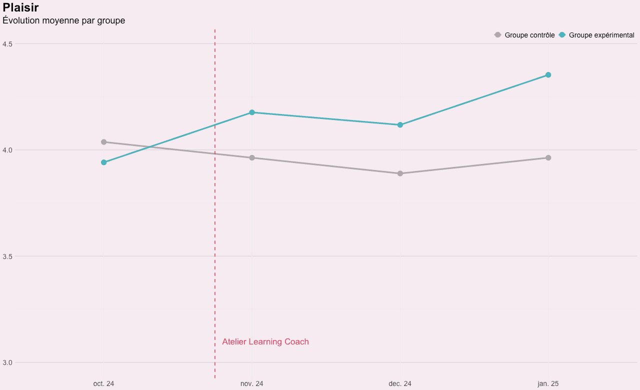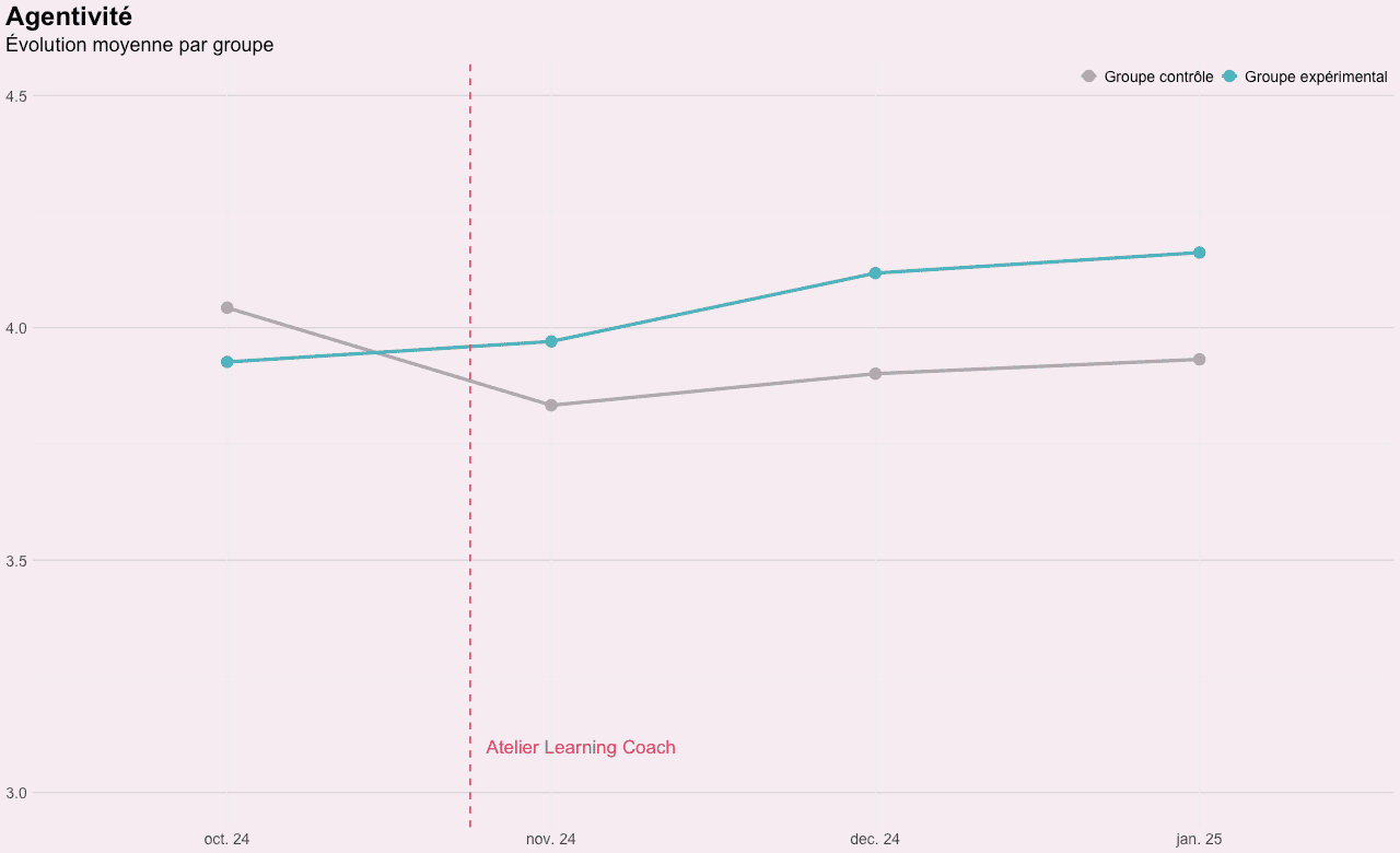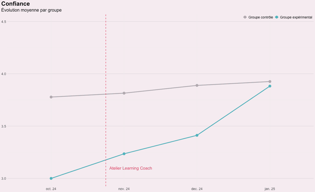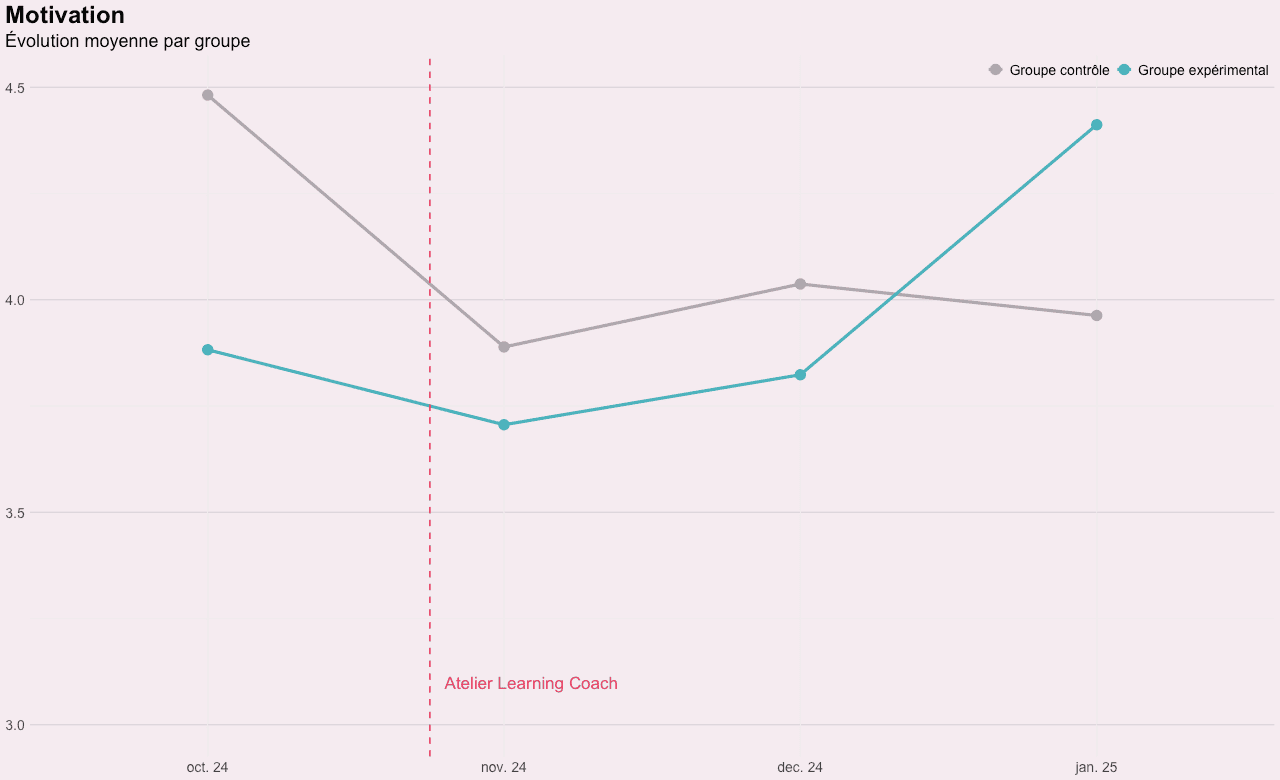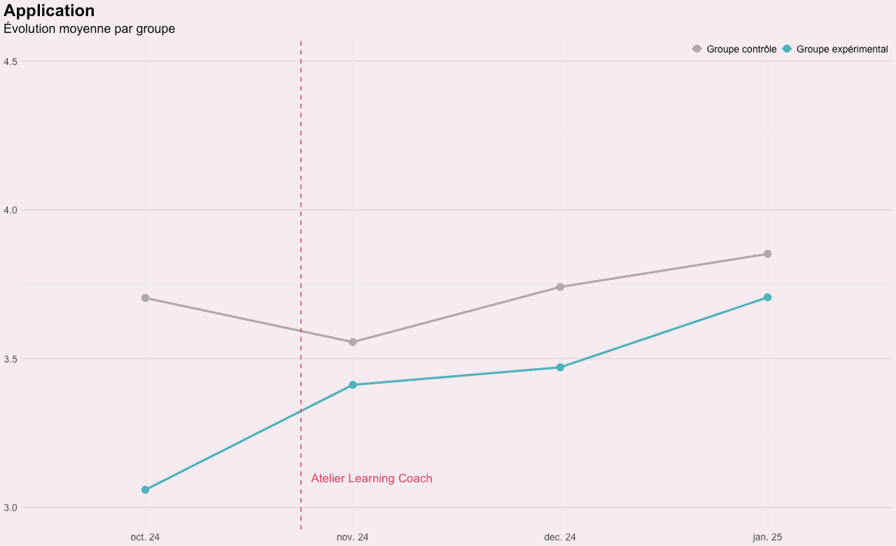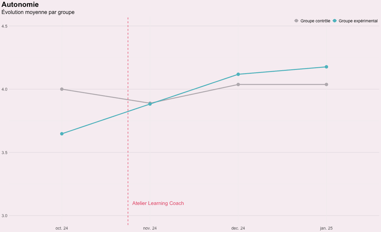 L’analyse des données montre que le groupe expérimental qui a bénéficié des ateliers apprendre à apprendre organisés par ses brigadiers a rejoint ou dépassé le groupe contrôle sur l’ensemble des variables mesurées : confiance en soi, agentivité, plaisir d’apprendre, etc. Ces variables sont particulièrement importantes pour le maintien de la motivation sur le long terme et démontre l’intérêt pédagogique de la démarche Learning Coach.